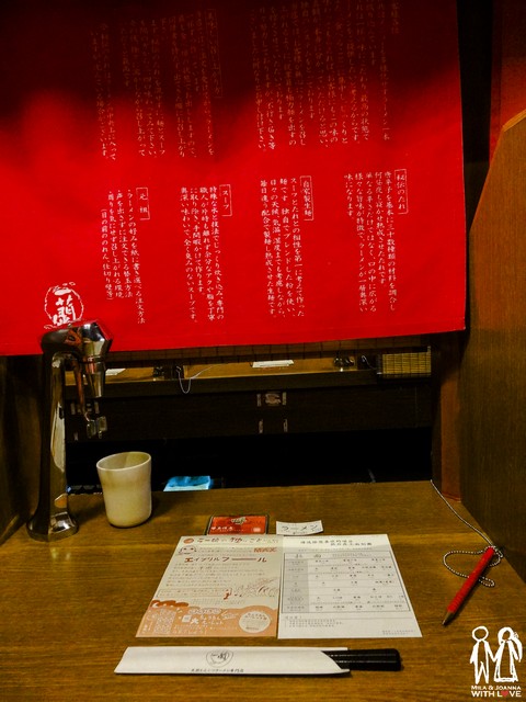 一蘭拉麵每個座位都有木板隔著,前方也有個門簾讓你可以保有隱私的盡情享受你的拉麵。MENU 可以跟他們要中文版本的,拉麵只有一種,MENU 上可以勾選你對於要點的拉麵在麵體上要熟點還是有嚼勁點、蔥蒜的分量等