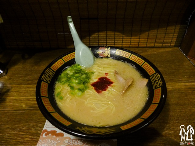 又到了晚餐時間,很幸運的在走到地鐵站前我們看到著名的一蘭拉麵,想當然的一定要去吃一次。日本許多拉麵店外都會有這樣販賣機,投入金額後按下你想吃的餐點,他就會掉下餐券。離開前有個小插曲,有兩位看起來像拉丁美裔的情侶正好在我走出來等阿嘉他們時操作那台販賣機,他們看了很久終於投了錢但只是猛按販賣機最左上方那張大張的拉麵圖,以為那是觸碰螢幕的在操作,因為按很久都沒反應所以兩人又在那交頭接耳的不知道怎辦。我就默默的走到他們旁邊要他們 put money and press here。能在異鄉幫助人換到的微笑也頗叫人開心的。