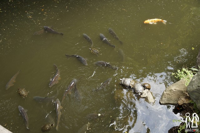這群鯉魚與烏龜,讓我們在這又待了快半小時。烏龜搶食的速度還是遠低於錦鯉,怪不得這群錦鯉每隻都肥滋滋的