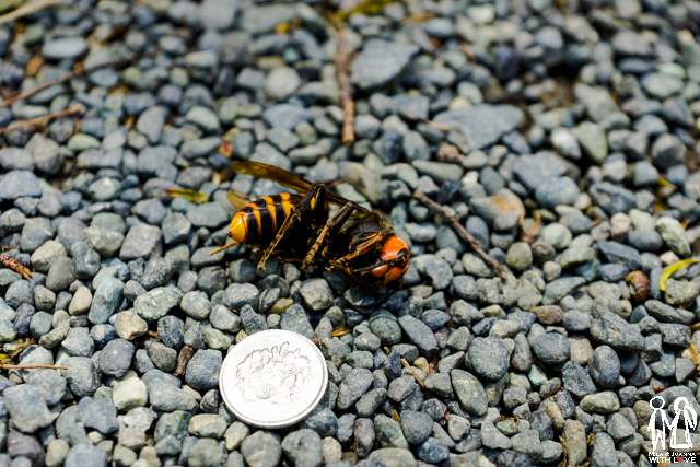 靜靜躺在參道中央的大黃蜂,最後我將他移至旁邊的樹葉堆中,簡單的掩埋並祝牠安息