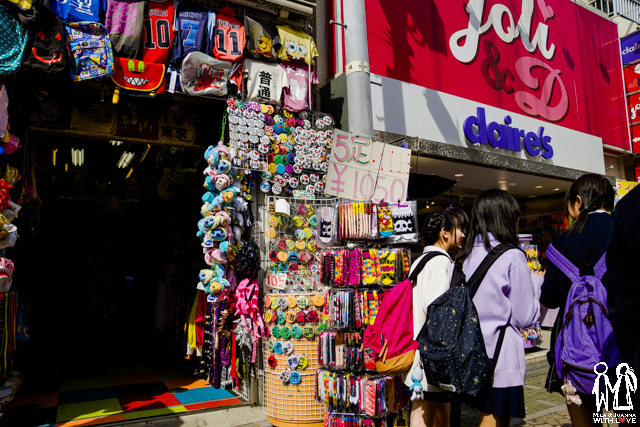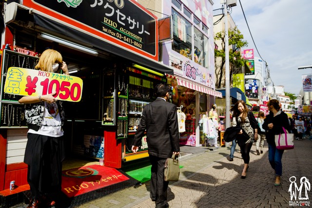 在此處具有特色的商店不少,竹下通是早期流行服飾的起源地,許多商店風格與我們這逢甲夜市差不多。在這我們遇到當地的地痞,對著擋在他攤位前的我跟阿嘉怒罵著:This is my street !